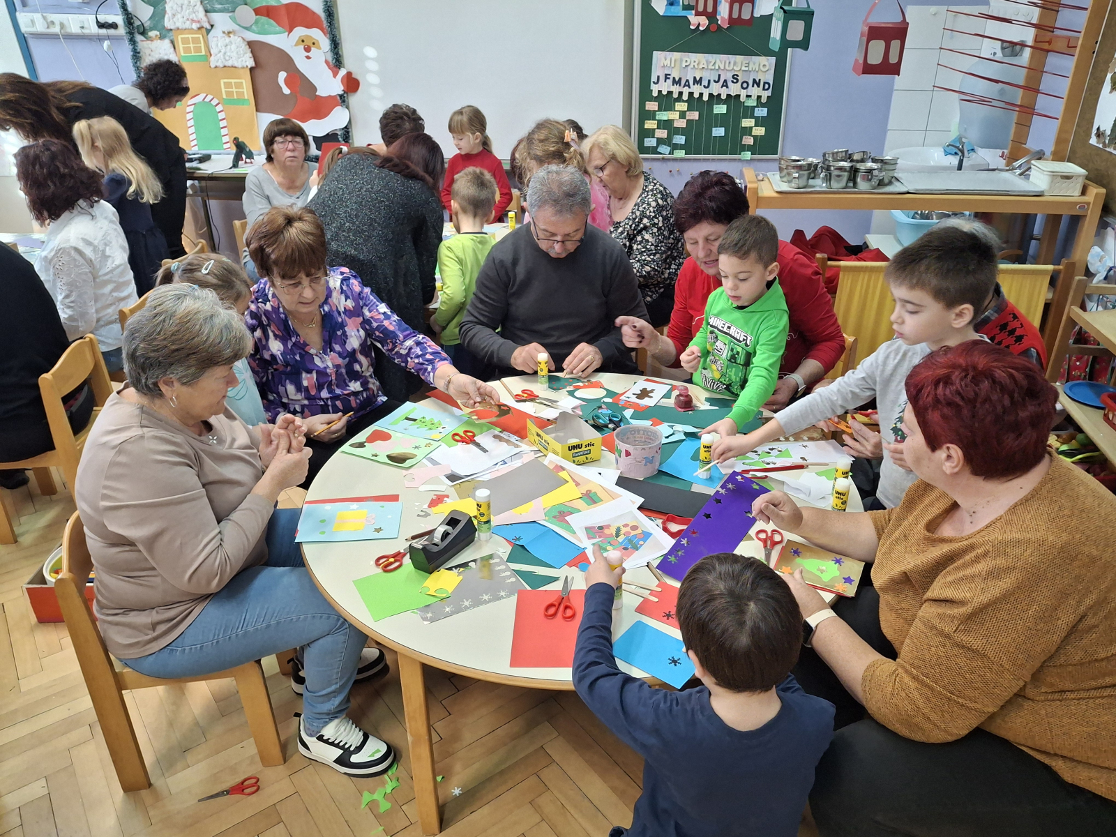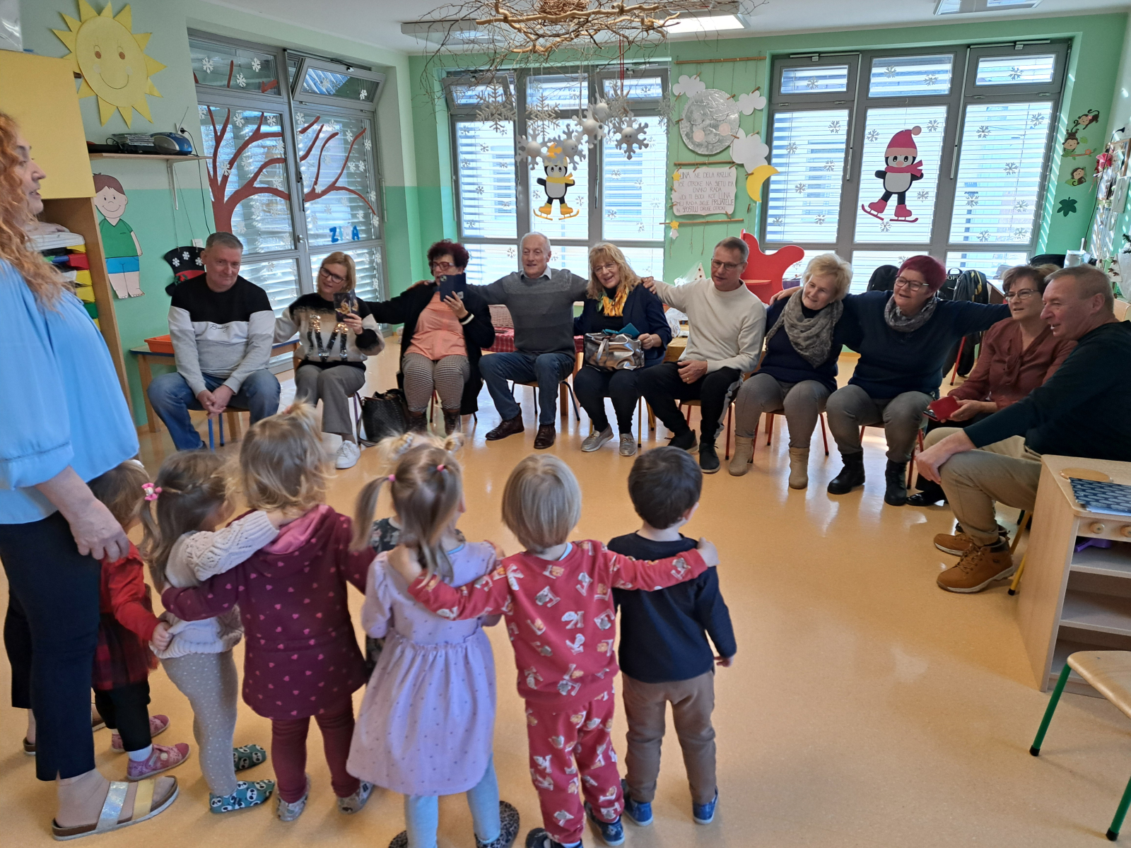Otroci so se babicam in dedkom predstavili z deklamacijami, petjem in plesom ter jim pokazali, kaj že zmorejo in česa so se v vrtcu že naučili. Skupaj so ustvarjali, brali pravljice, v prazničnem vzdušju okrasili novoletne jelke, se fotografirali. Vsak nasmeh, objem in iskren pogled je pričal o tem, kako dragocen je čas, ki ga stari starši preživijo v družbi svojih vnukov.
