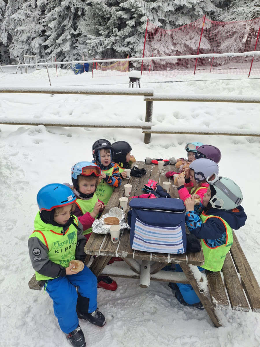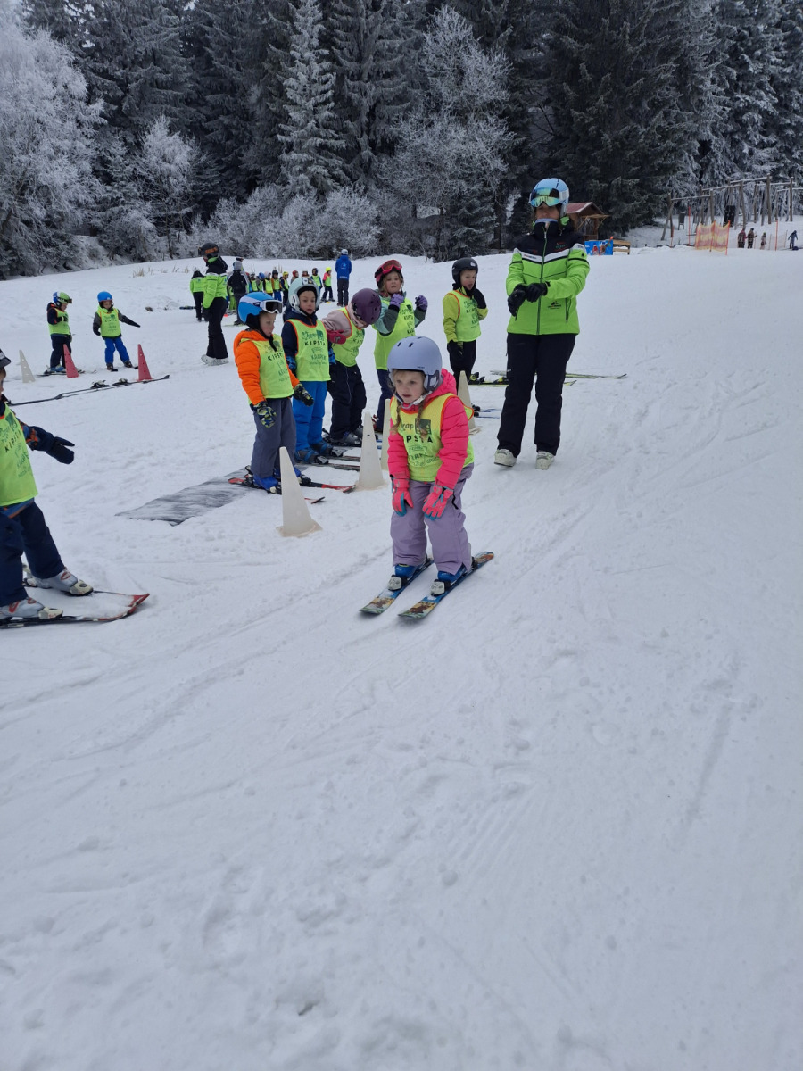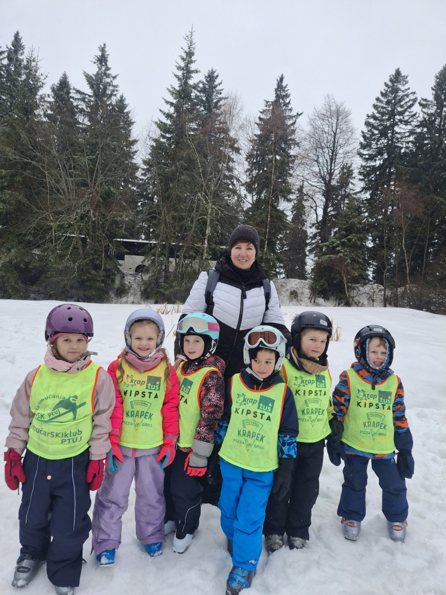 V tednu od 2. 2.-6. 2. 2026, so se otroci iz skupine Škrati skupaj z otroki iz okoliških vrtcev udeležili šole smučanja na Arehu. Učili so se osnov smučanja. Najprej so se seznanili z opremo, ki je potrebna za smučanje. Na smučišču pa še z napravami in predvsem s pravili varnega vedenja na smučišču. Za otroke je bila to enkratna izkušnja, saj so nekateri prvič stali na smučeh. Ob koncu tedna so že zbrali pogum za vzpon na rahlo strmino in se po prilagojeni progi spustili v cilj. Zadnji dan tečaja so starši imeli možnost obiska in ob progi spodbujali svoje malčke, otroci pa so prejeli priznanja za sodelovanje.