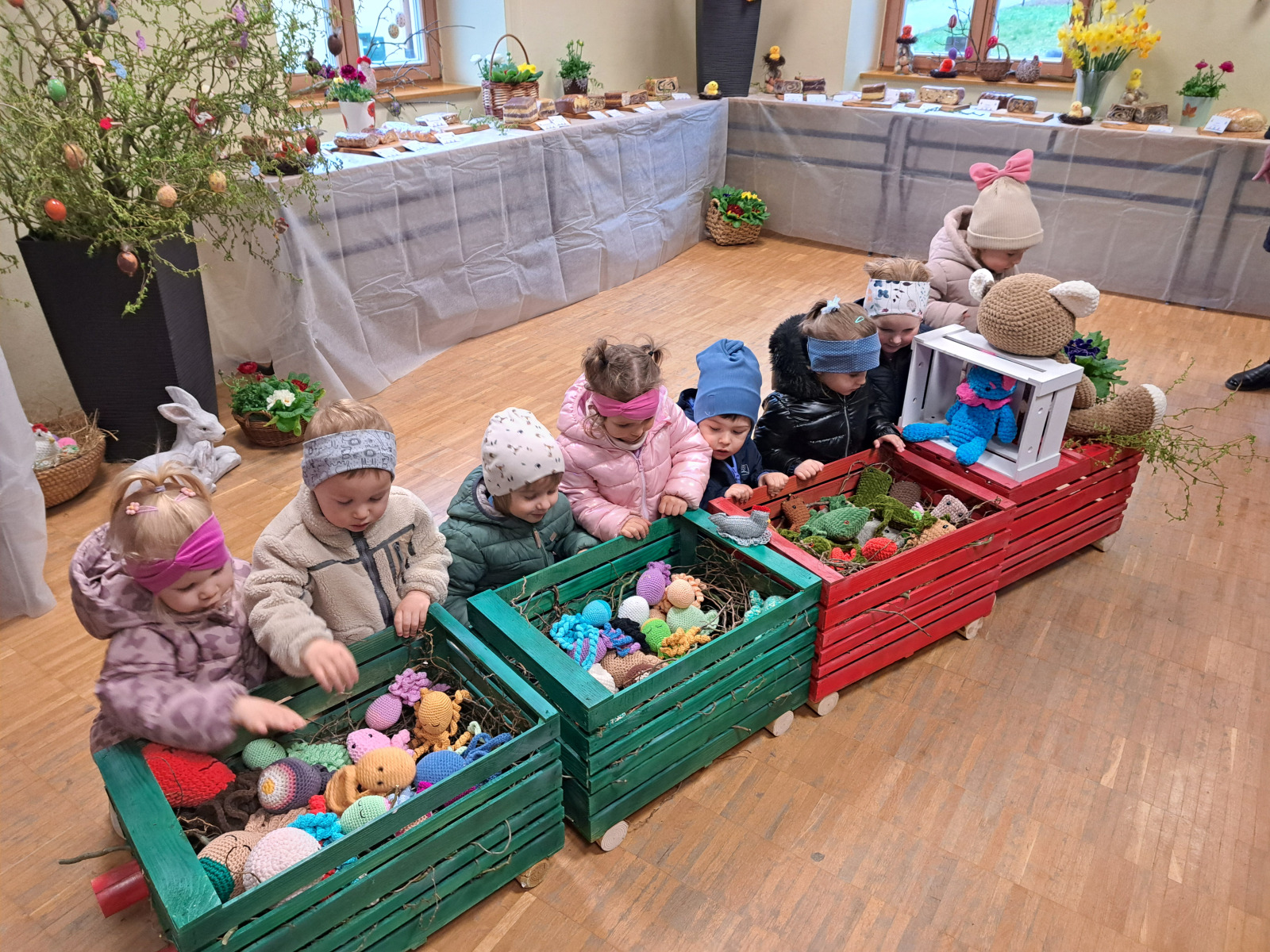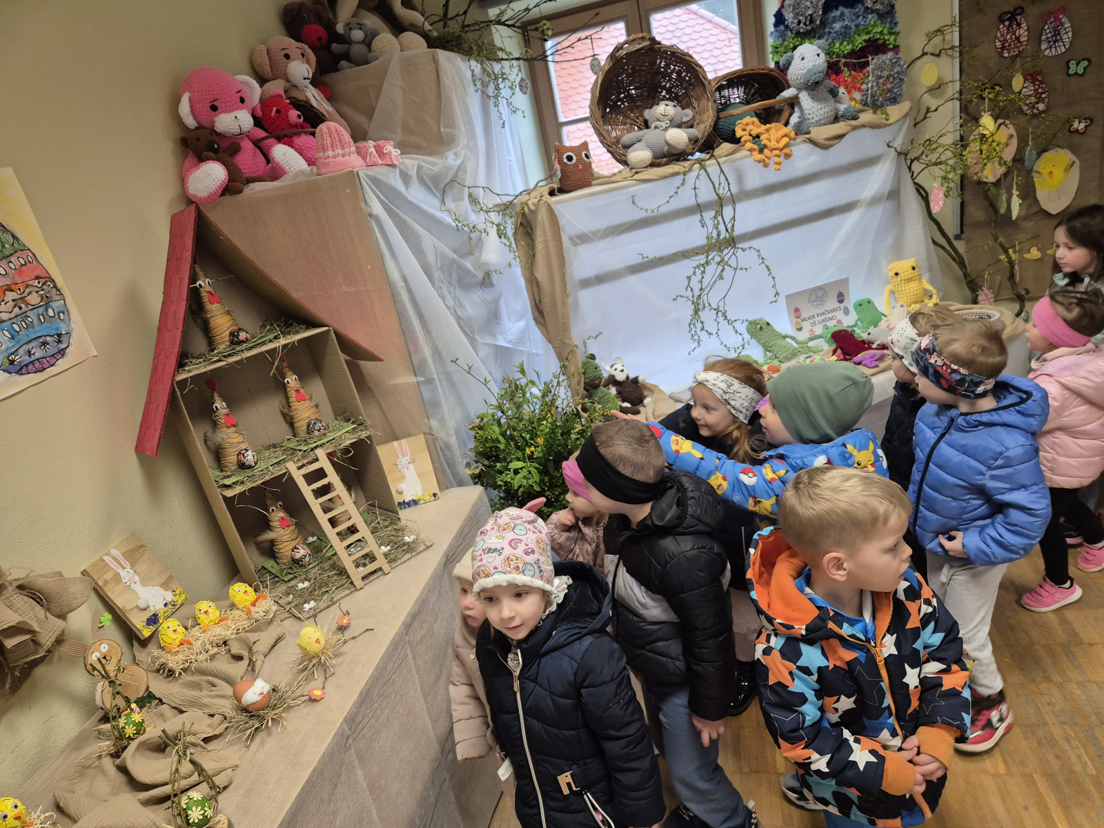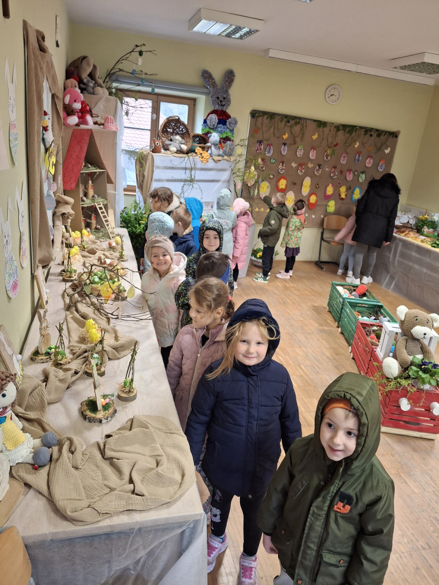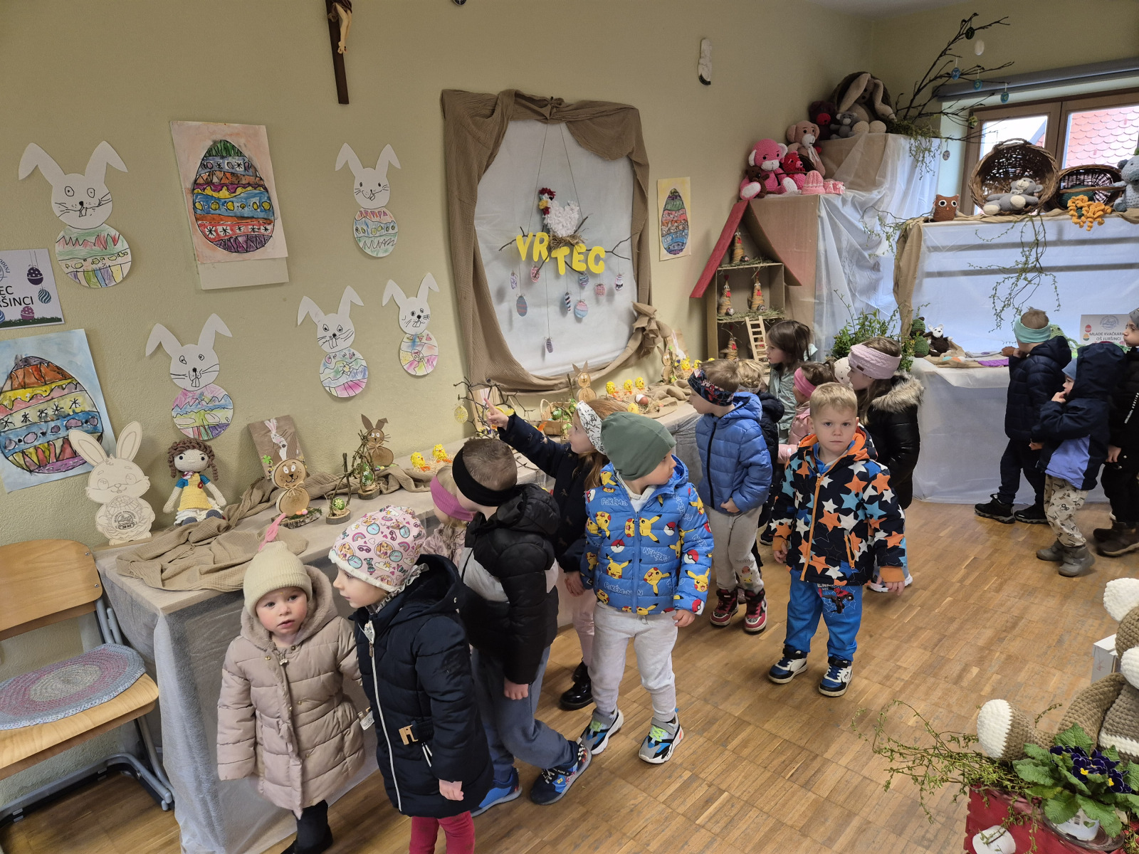 V ponedeljek, 30. 3. 2026 smo z otroki z veseljem obiskali tradicionalno velikonočno razstavo potic in ročnih del, ki jo je pripravilo Društvo gospodinj Juršinci. Med razstavljenimi dobrotami in skrbno izdelanimi ročnimi deli, so svoje mesto našli tudi izdelki naših otrok iz vrtca.