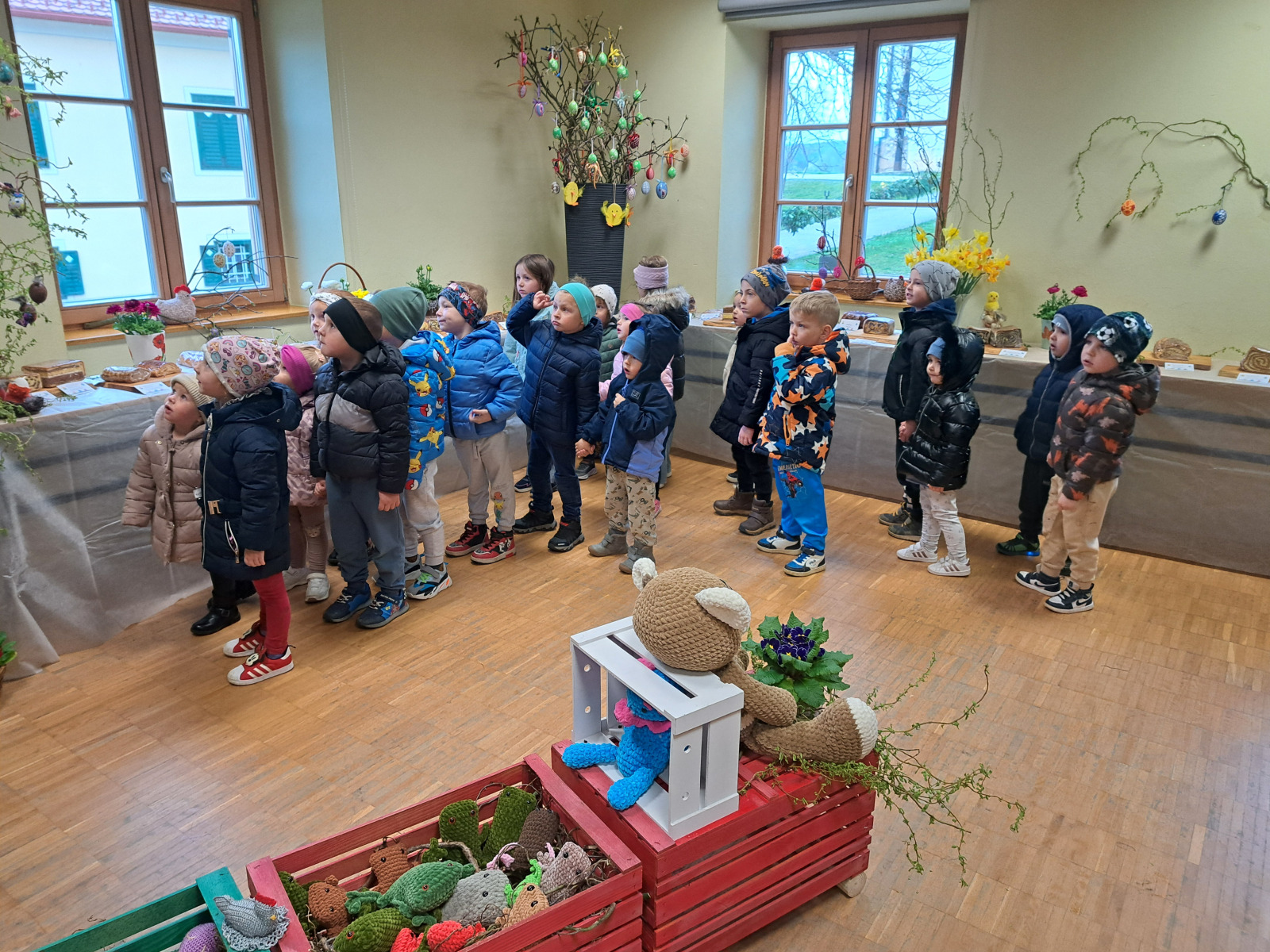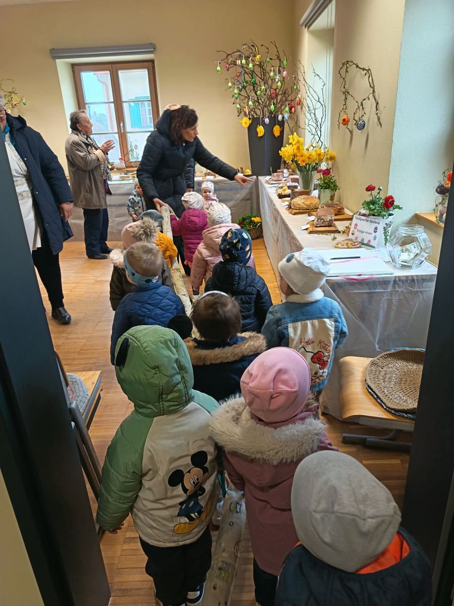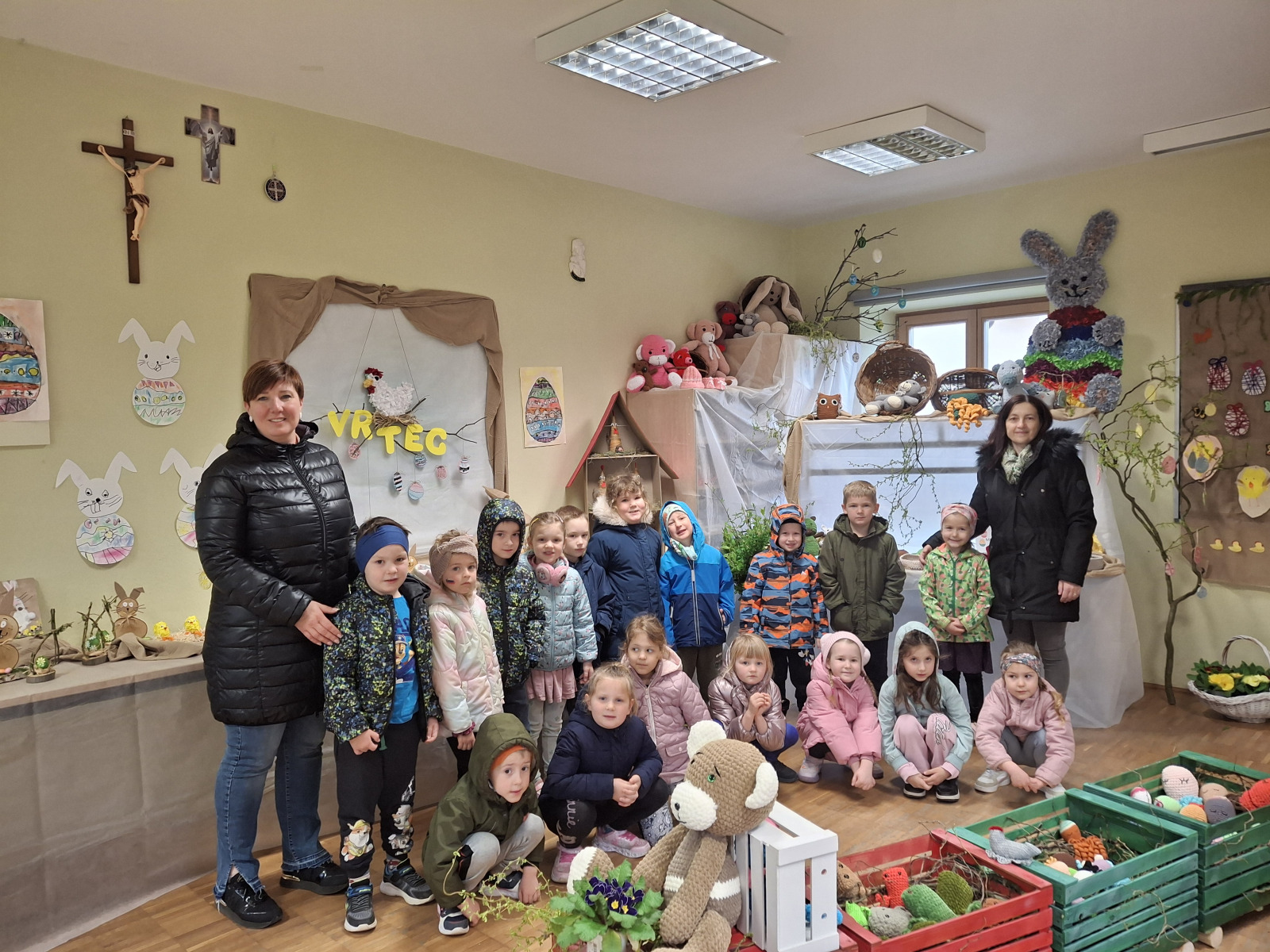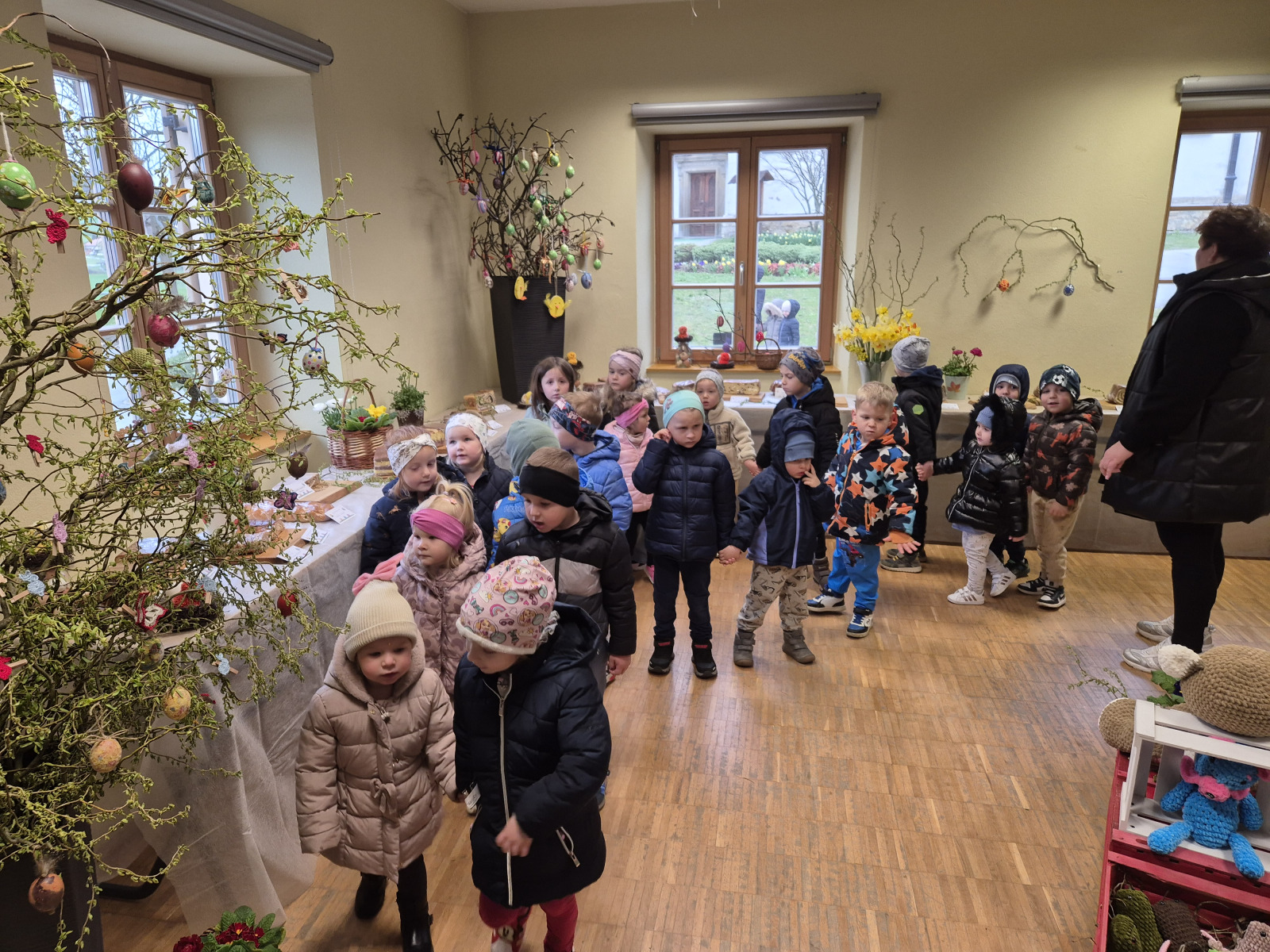 V ponedeljek, 30. 3. 2026 smo z otroki z veseljem obiskali tradicionalno velikonočno razstavo potic in ročnih del, ki jo je pripravilo Društvo gospodinj Juršinci. Med razstavljenimi dobrotami in skrbno izdelanimi ročnimi deli, so svoje mesto našli tudi izdelki naših otrok iz vrtca.