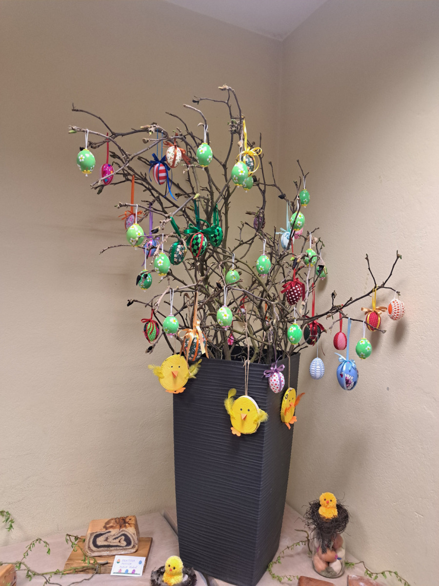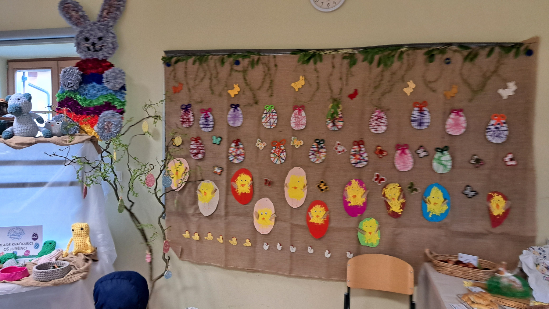 Otroci so z iskricami v očeh iskali in prepoznavali svoje izdelke in bili na njih ponosni. Še posebej veliko jim je pomenilo, da so njihovo ustvarjanje opazili in pohvalili tudi drugi obiskovalci razstave ter članice društva. Za sodelovanje so nam pripravile tudi sladko pozornost – čokoladna jajčka, ki so otroke še posebej razveselila in jim polepšala obisk razstave.